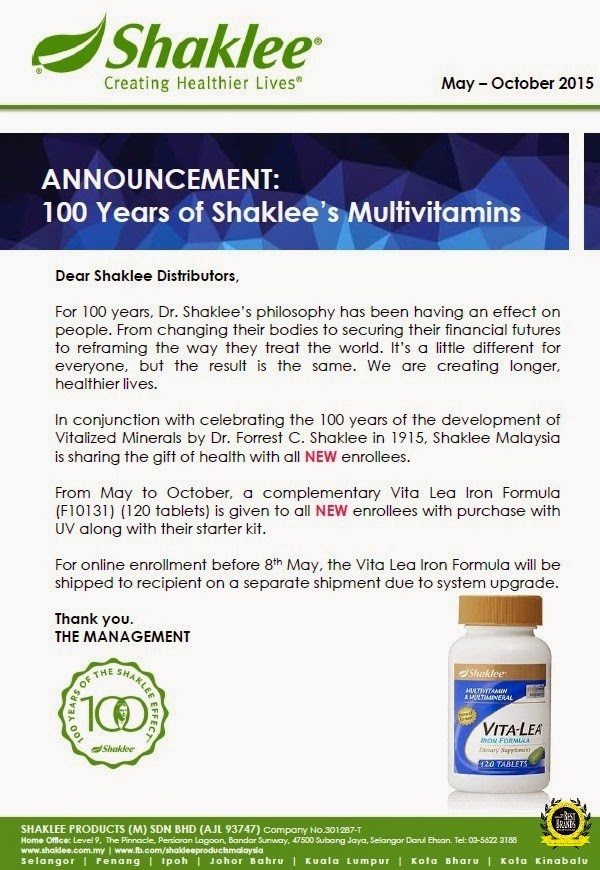 ulangtahu kelahiran produk utamanya iaitu VITALEA WITH IRON, shaklee